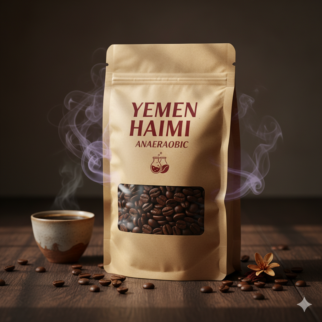 Anaerobically processed Typica coffee from Al-Mokha Estate, Yemen — rich and syrupy with notes of cherry, chocolate, and wine.
